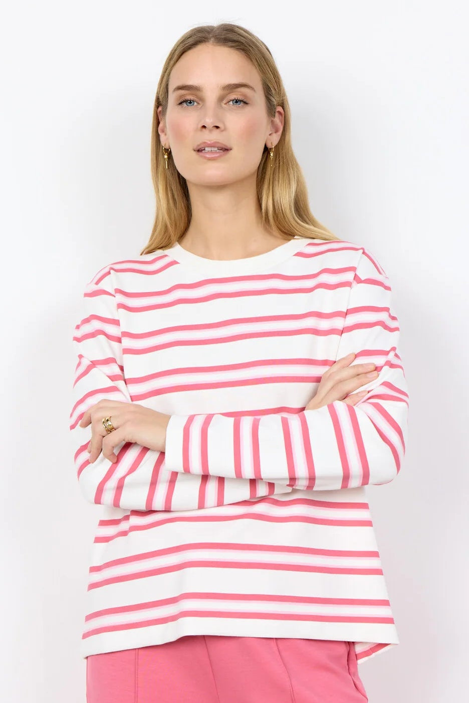 BARNI 52 Bluse er fremstillet af 48% modal, 48% polyester og 4% elastan. Den har en klassisk rund hals, lange ærmer og et stribet print, der giver et strejf af elegance. Sæt den sammen med skræddersyede bukser eller dine yndlingsjeans for et cool, unikt look.