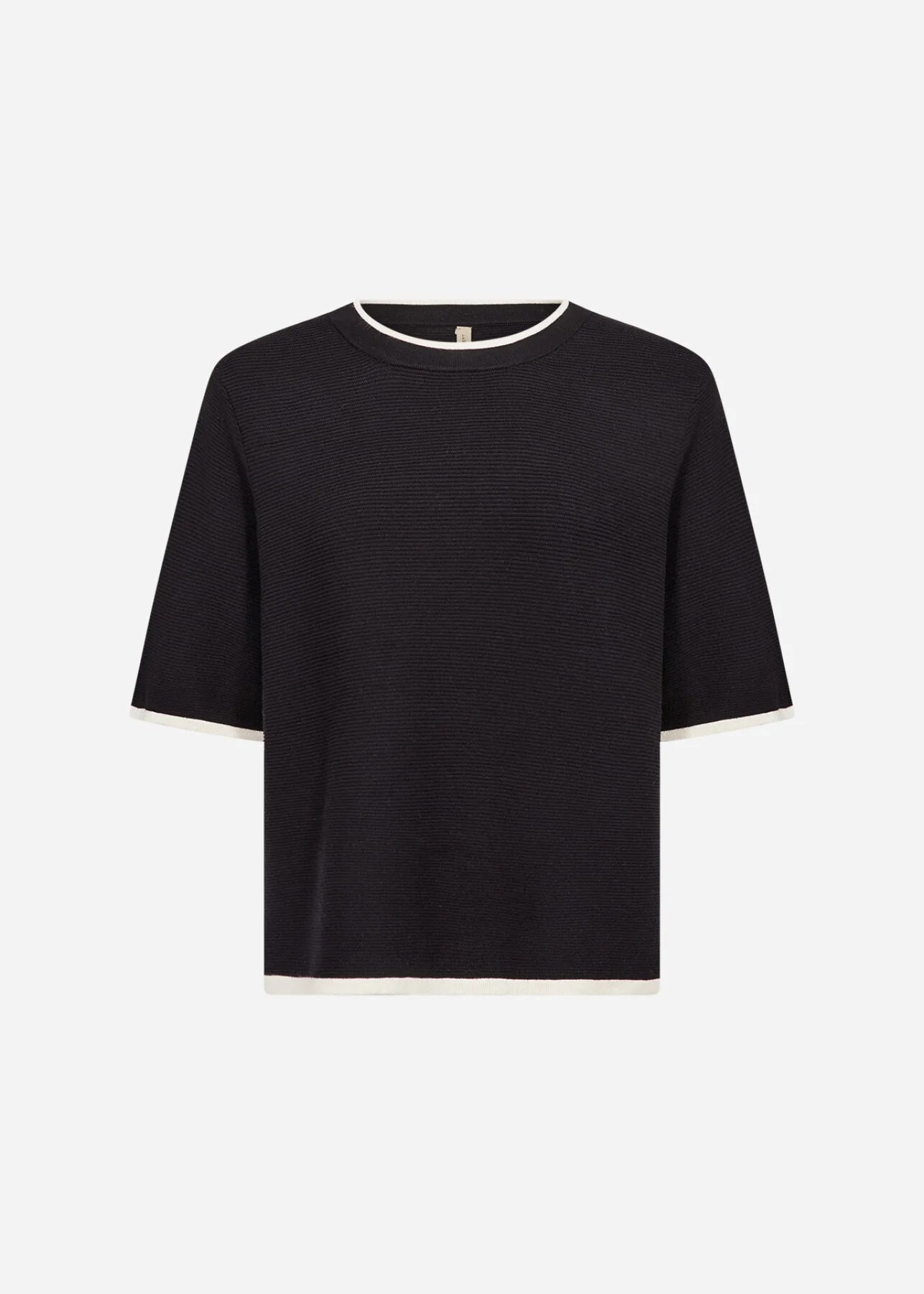 DOLLIE 793 er en pullover fremstillet af 75 % viskose og 25 % nylon. Den har en rund halsudskæring med kontrastfarvet kant og korte ærmer, der tilføjer et strejf af elegance. Sæt den sammen med skræddersyede bukser eller en nederdel for et elegant look.