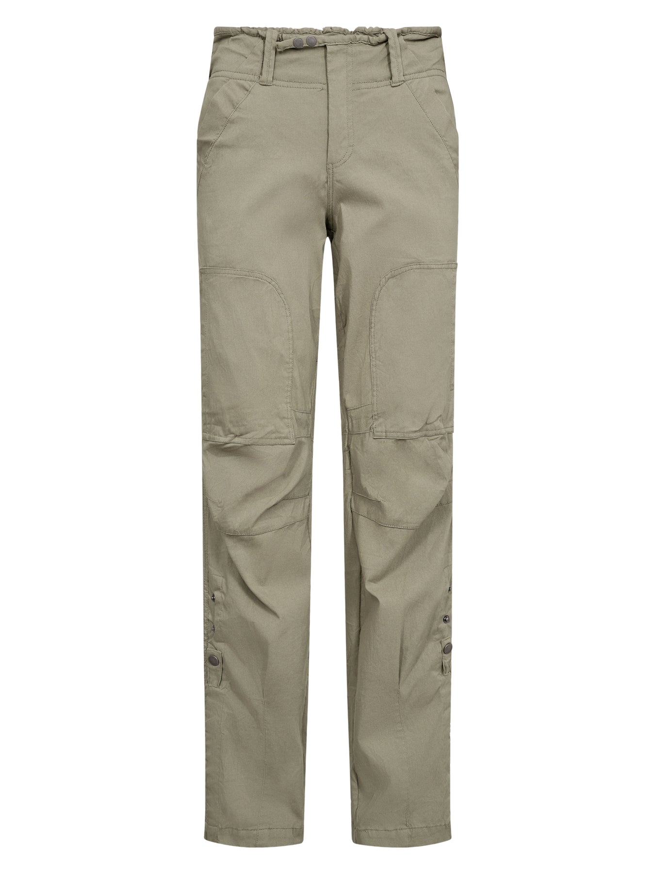 Disse bukser har en afslappet pasform med lige ben og et funktionelt udtryk, der gør dem nemme at bruge i hverdagen. Fronten lukkes med to knapper placeret ved siden af hinanden, hvilket giver et lille twist til det ellers enkle design, og de skrå lommer understøtter det praktiske udtryk. Syninger ved knæene tilfører ekstra struktur, mens bagsiden har lommer og et mere roligt look. Style dem med en skjorte, let strik eller en enkel top for et anvendeligt hverdagsoutfit.