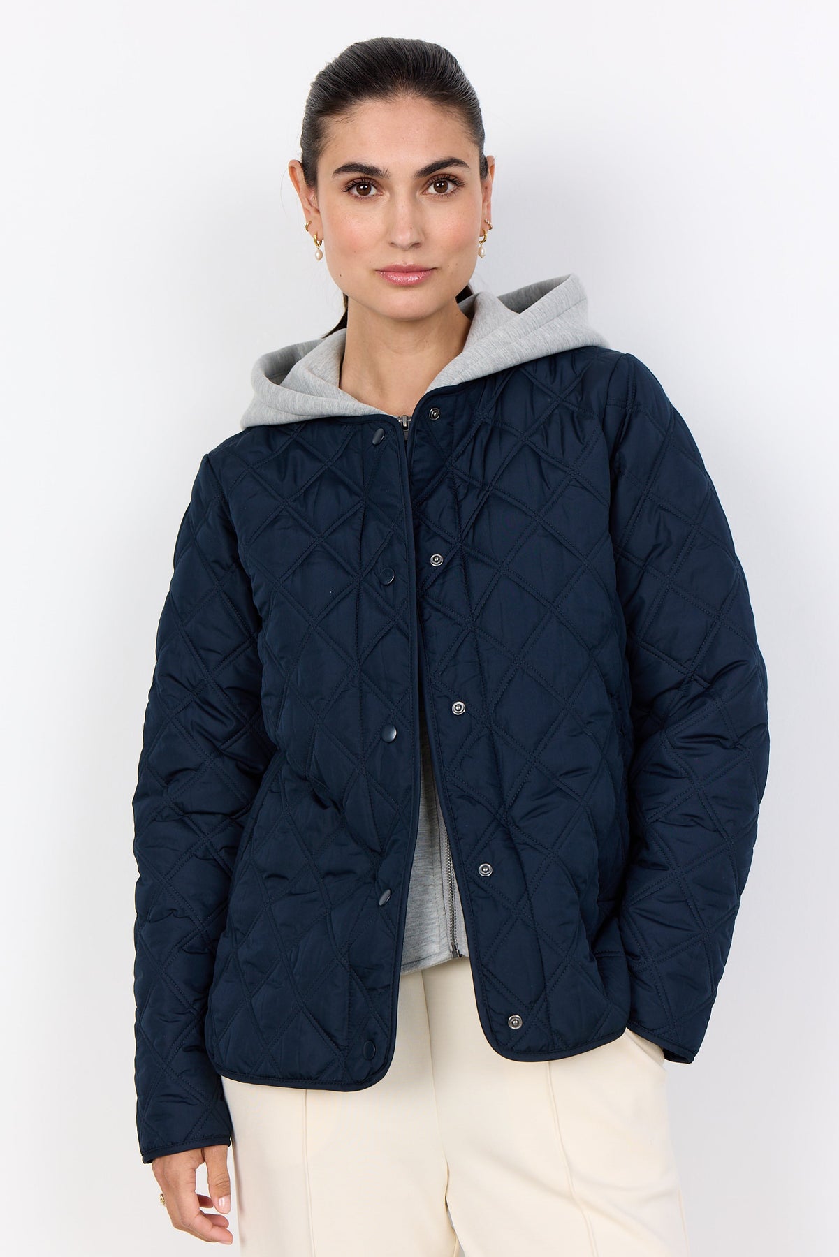 FENYA 75 er en jakke fremstillet af 100 % polyester. Jakken har et quiltet mønster, trykknapper og en fastgjort hætte. Den passer godt til afslappede outfits og giver et ekstra lag varme.