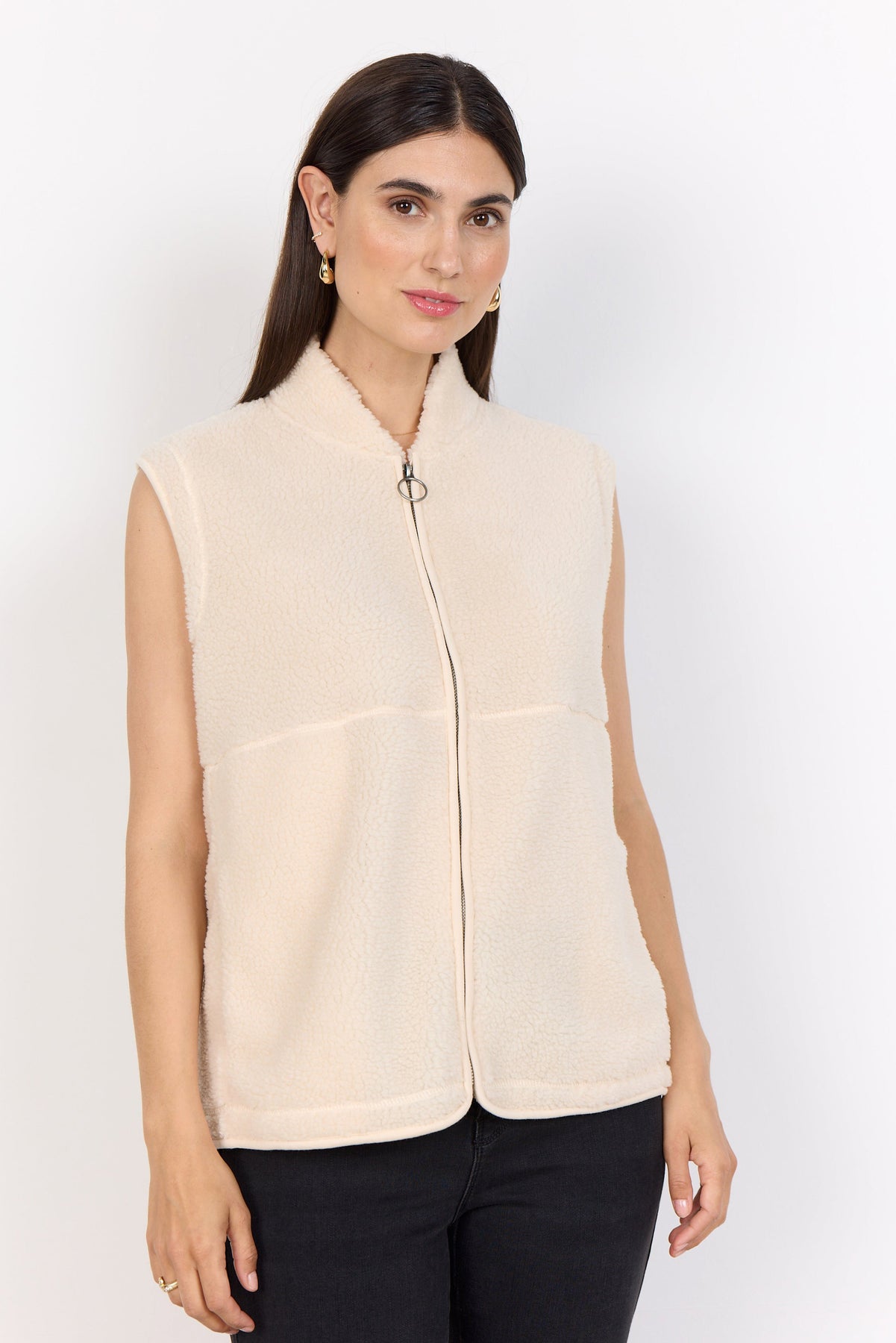 Onyx er en cool vest fremstillet af 100% genanvendt polyester. Vesten har en høj halsudskæring, en løs pasform, lynlåslukning og et teddy-materiale. Style den med en klassisk skjorte og et par habitbukser for et flot look.